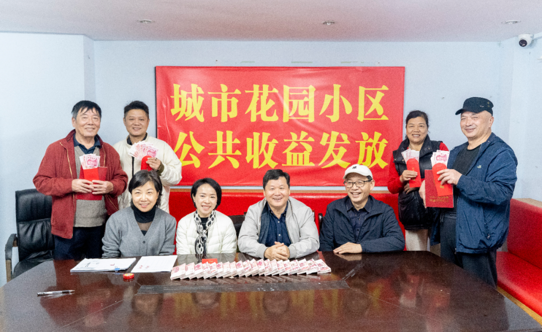 图为浔阳区城市花园小区业主领取公共收益分红。(何晓芳 摄)